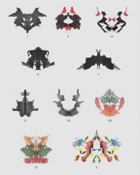 로샤 잉크반점 검사 : 1921년에 로샤가 만든 투사형 성격검사로 대칭적인 잉크반점이 그려진 10장의 카드로 이루어져 있다. 10장 중 5장의 카드는 무채색이고, 2장은 검정과 붉은 색이 혼합된 카드이고, 3장은 여러 색으로 이루어진 카드이다.