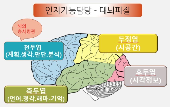 후두엽은 뇌의 뒷부분으로 시각정보를 처리한다.